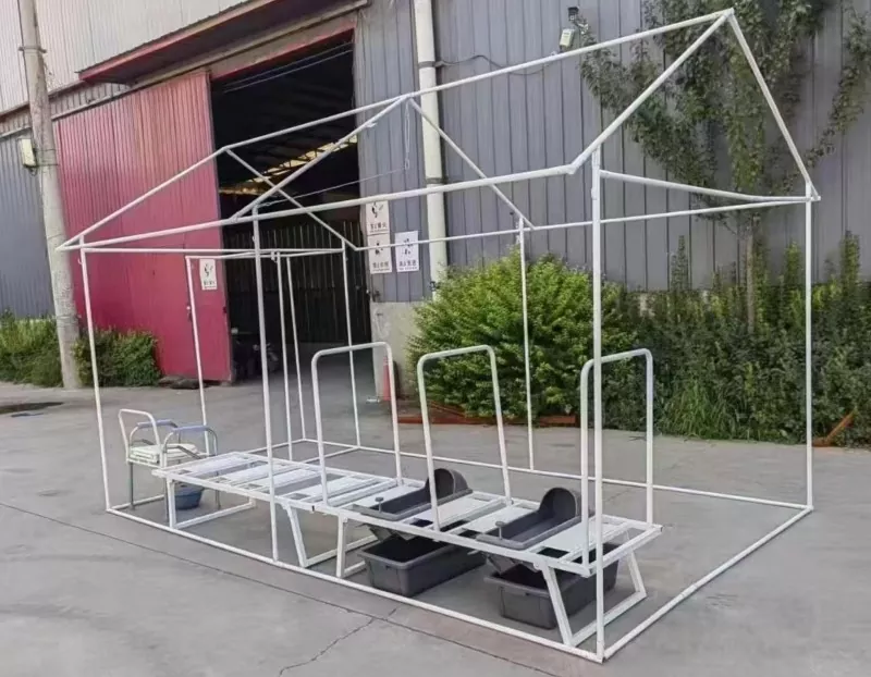 Lều vệ sinh cứu trợ thiên tai khẩn cấp có cấu trúc tường thẳng đứng dốc đôi. Khung thép được xử lý chống gỉ, mái che sử dụng vật liệu chống thấm và chống cháy, thiết bị vệ sinh được làm bằng vật liệu có độ bền cao với kích thước chính xác được đảm bảo bằng khuôn tạo hình. Hệ thống chiếu sáng cảm biến đã vượt qua các bài kiểm tra chống nước và chống sốc, thích hợp sử dụng ngoài trời. Áp dụng khái niệm thiết kế mô-đun, lều cho phép lắp ráp và tháo rời nhanh chóng—các kết nối khung thép sử dụng các khớp nối, cho phép lắp đặt mà không cần dụng cụ. Hệ thống thông gió áp dụng thiết kế đối lưu với màn chắn chống côn trùng để duy trì lưu thông không khí bên trong.